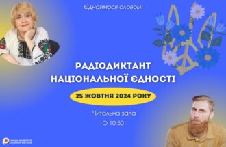 Високоповажна університетська спільното! Долучаймося до написання ХХІV Радіодиктанту національної єдності! Цього року він відбудеться 25 жовтня 2024 року напередодні Дня української писемності та мови. Авторка радіодиктанту-2024 – письменниця, амбасадорка української культури у світі Оксана Забужко. Читатиме текст радіодиктанту воїн і поет Павло Вишебаба. Запрошуємо 25 жовтня 2024 року о 10:50 до читальної зали ПУЕТ. Єднаймося словом!