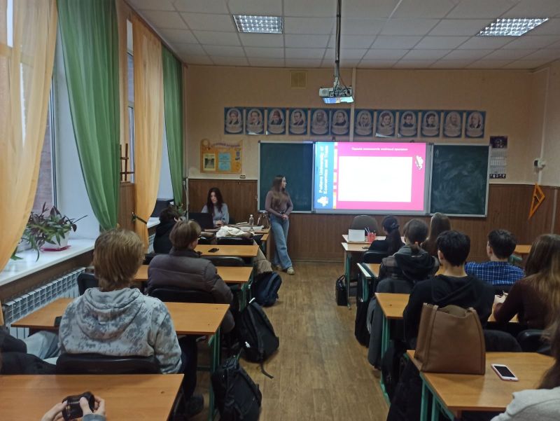 Студентка групи ФІЛб-11 Олександра Бондар розповіла учням 11-х класів про особливості і переваги навчання в ПУЕТ.