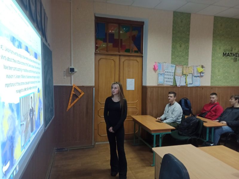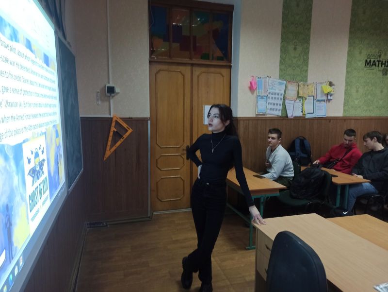 Студентка групи ФІЛб-31 Кароліна Дажук провела майстер-клас “Німецько-англійський послідовний переклад” на прикладі патріотичної гри “Symbols of Invincibility”, де пропонувала учням 11-х класів долучитися до перекладу з німецької мови на англійську мову.