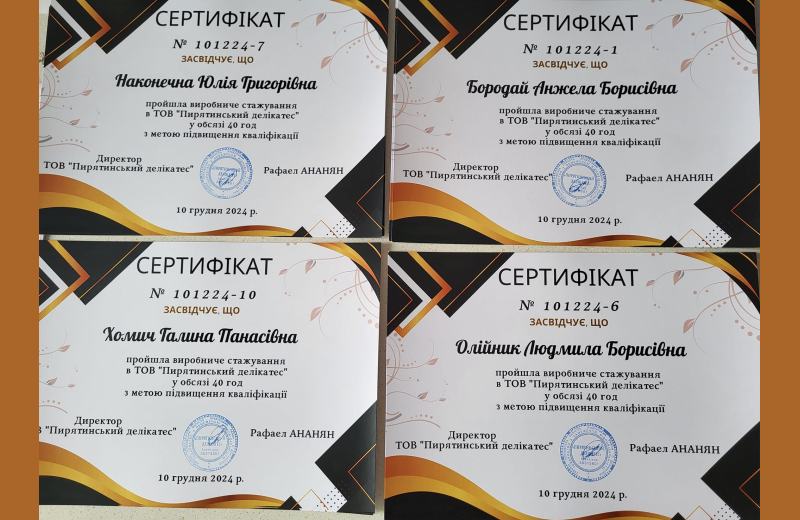 Викладачі кафедри ТХВРГ постійно підвищують кваліфікацію, тож нещодавно пройшли виробниче стажування на підприємстві ТОВ “Пирятинський делікатес”, яке є одним з лідерів виробництва високоякісних напівфабрикатів Полтавщини.