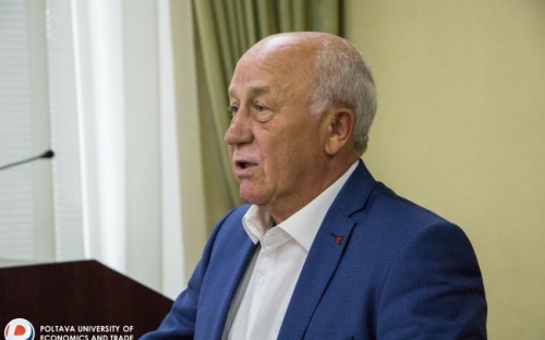 Наостанок усі присутні зробили фотографії на згадку біля press wall Полтавського університету економіки і торгівлі.