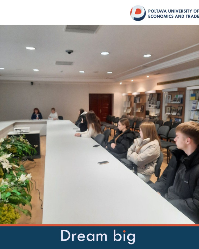 18 листопада 2025 року здобувачі вищої освіти 1–3 курсів спеціальності «Фінанси, банківська справа, страхування та фондовий ринок» ПУЕТ разом з викладачем кафедри фінансів та банківської справи доц. Юлією Глущенко взяли участь у практичному занятті, проведеному на базі Головного управління Державної казначейської служби України у Полтавській області.
