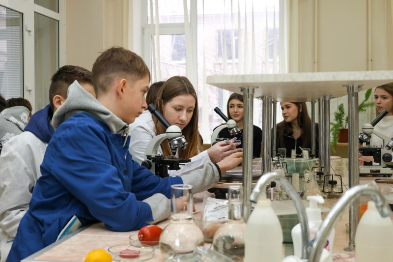 Викладач кафедри товарознавства, біотехнології, експертизи та  митної страви Надія Гнітій, Людмила Флока та Зоя Рачинська провели у спеціалізованій лабораторії практичне заняття з біології на тему: Основи молекулярної біології. Білки». Проректор з науково-педагогічної роботи Юрій Матвієнко ознайомив учнів з можливостями використання повітряної робототехніки для аерофотозйомки. Професор Павло Шуканов розповів про значення людини та штучного інтелекту в умовах формування метагеографічного простору і Суспільства 5.0.