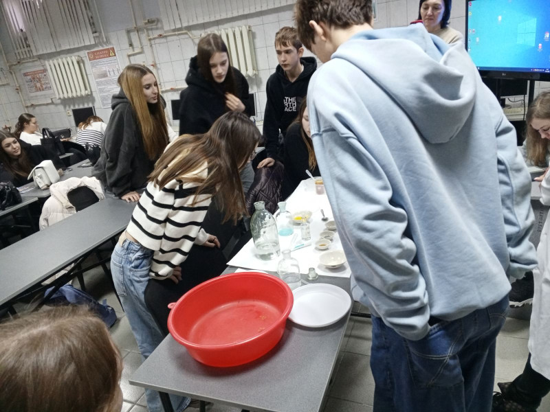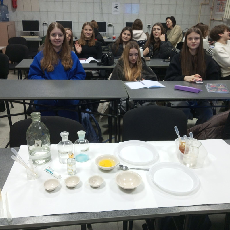 14 січня 2025 року викладачі кафедри товарознавства, біотехнології, експертизи та митної справи Надія Гнітій, Людмила Флока та Зоя Рачинська провели для учнів 9-А класу Наукового ліцею № 3 Полтавської міської ради практичне заняття з біології на тему: «Основи молекулярної біології. Білки». Поговорили про властивості, будову і основні функції білків та провели цікаві практичні хімічні досліди щодо їх денатурації.