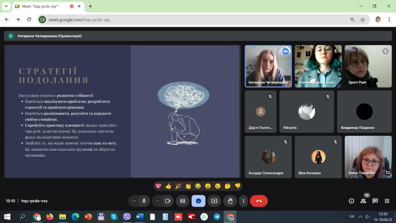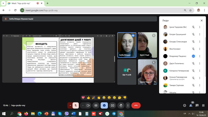10 квітня 2025 року в ПУЕТ відбулася ХLVІІІ Міжнародна наукова студентська конференція за підсумками науково-дослідних робіт студентів за 2024 рік «Актуальні питання розвитку науки та забезпечення якості освіти у ХХІ столітті». Психологічна тематика науково-дослідних робіт студентів була представлена на секції №16 «Психологія. Педагогіка. Фізична культура і спорт: стан, проблеми, перспективи (керівник Симоненко Н. О., ст. викладач кафедри педагогіки та суспільних наук). У роботі секційного засідання в онлайн форматі взяли участь студенти різних спеціальностей та курсів – від першого до четвертого курсу бакалаврату, представники академічних груп ФІЛ б-11, М б-41, МЕВ МЕ б – 11, Т б – 11, ФБСС б-41, ГРС б – 11.