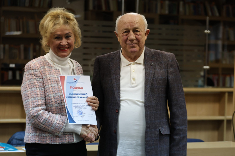 Ректор Олексій Олексійович Нестуля подякував колективу за плідну роботу з набору на навчання у 2025 році та вручив Грамоти Всеукраїнської центральної спілки споживчих товариств і ЦК Профспілки працівників споживчої кооперації України членам приймальної комісії на чолі з відповідальним секретарем Денисом Анатолійовичем Мироновим.