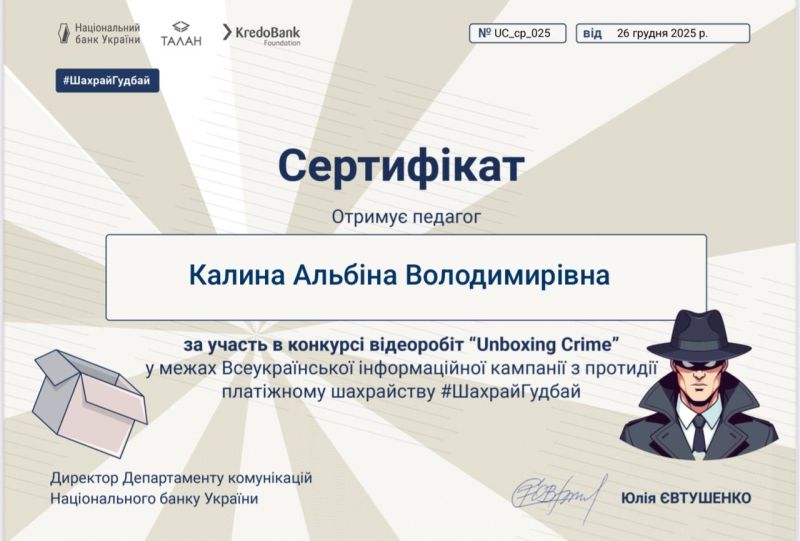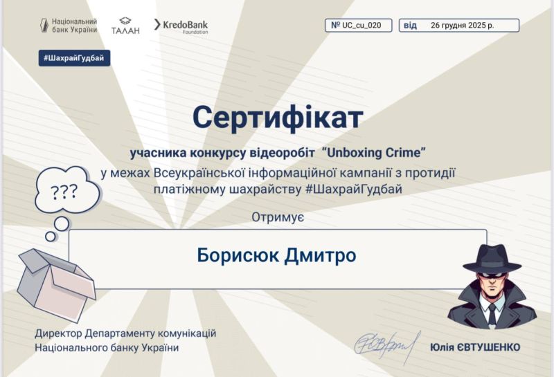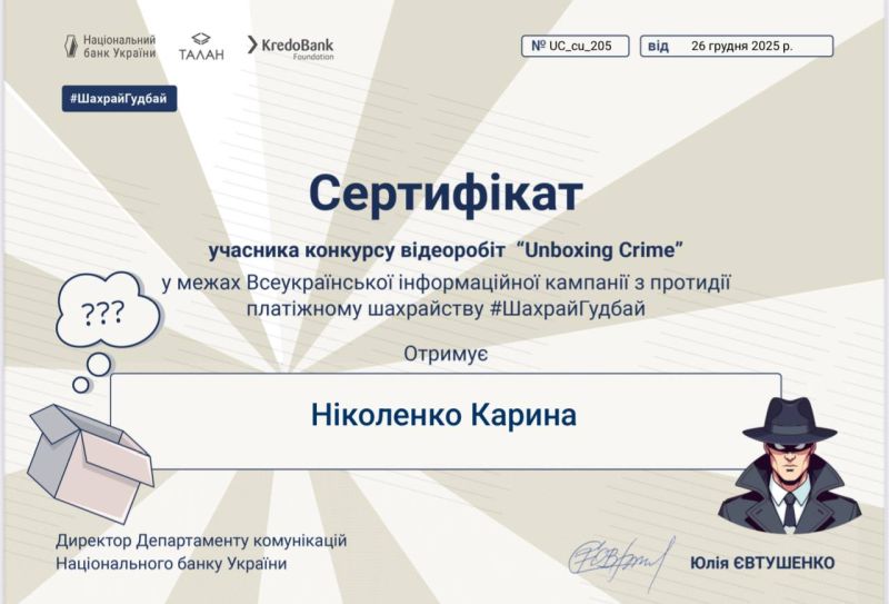 За результатами участі всі учасники отримали іменні сертифікати Національного банку України, що підтверджують їхню участь у всеукраїнській освітній ініціативі з фінансової безпеки.