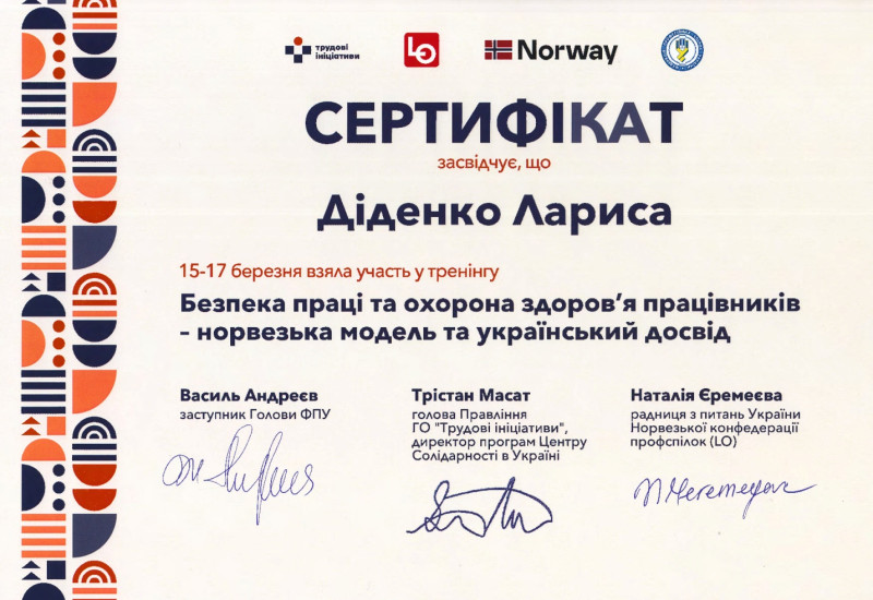 Тренінг БЕЗПЕКА ТА ОХОРОНА ЗДОРОВ’Я ПРАЦІВНИКІВ: НОРВЕЗЬКА МОДЕЛЬ ТА УКРАЇНСЬКИЙ ДОСВІД