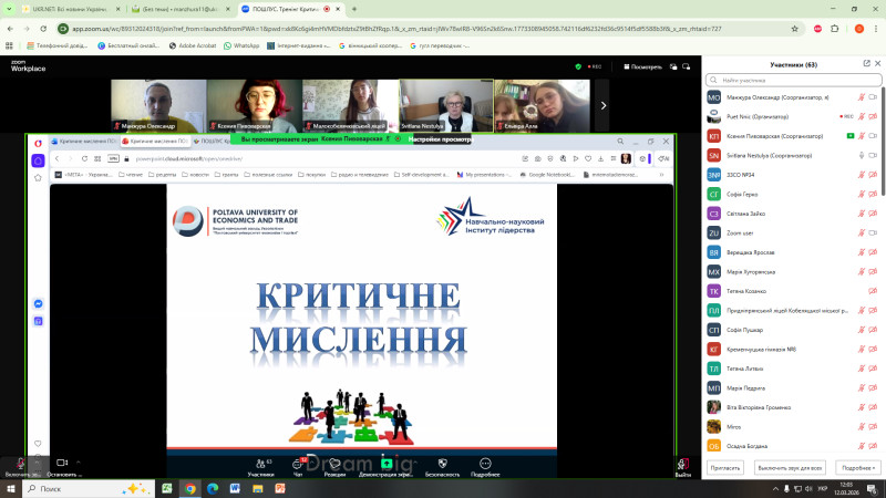 12 березня 2026 року відбувся в онлайн форматітренінг «Критичне мислення». На зустріч приєдналися більше 100 учасників – лідерів учнівського самоврядування Полтавщини.