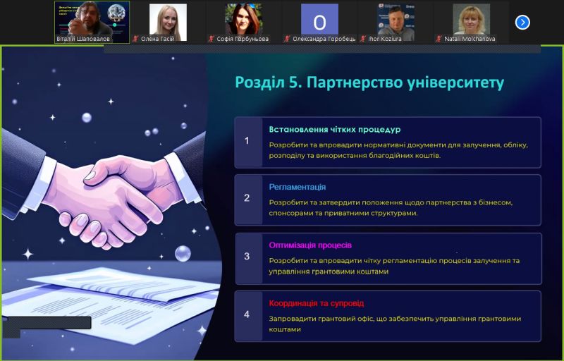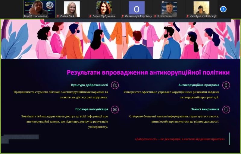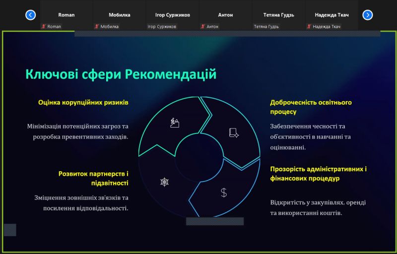 Як підкреслив спікер, мета рекомендацій — не створювати нові формальності, а встановити єдині стандарти прозорості та відповідальності в усіх підсистемах університету. Під час дискусії учасники обговорили, як ці інструменти впливають на інституційну довіру, внутрішню культуру та конкурентоспроможність ПУЕТ.