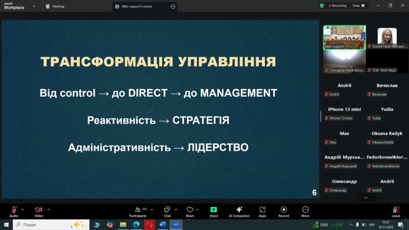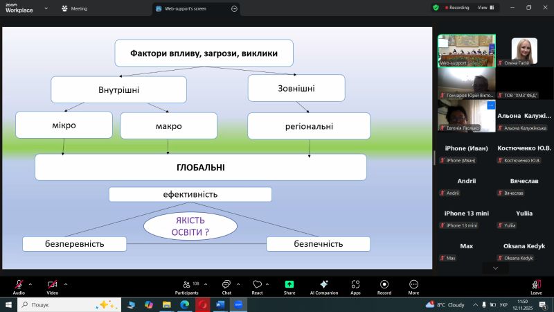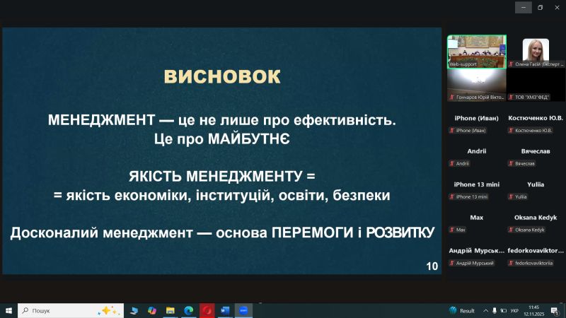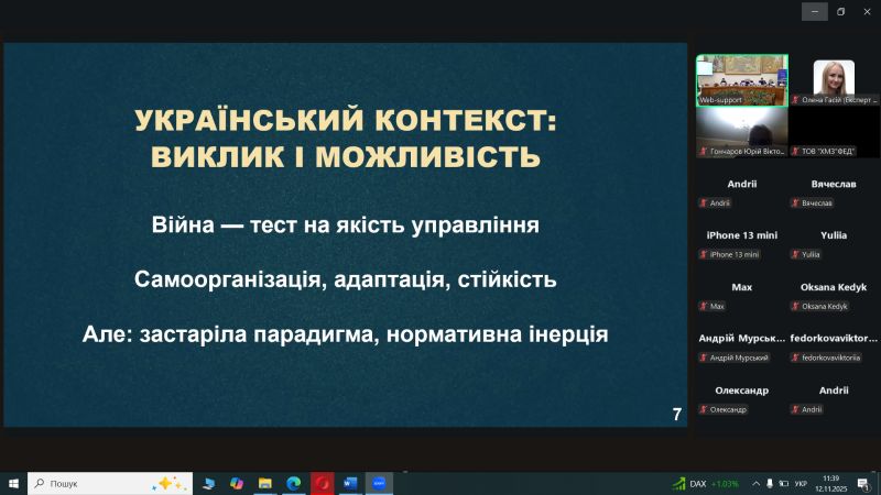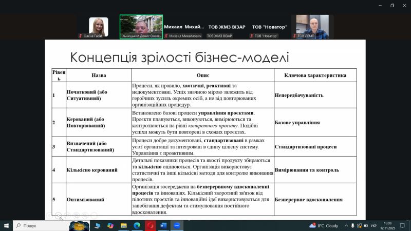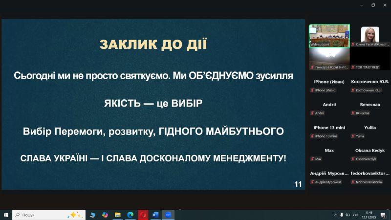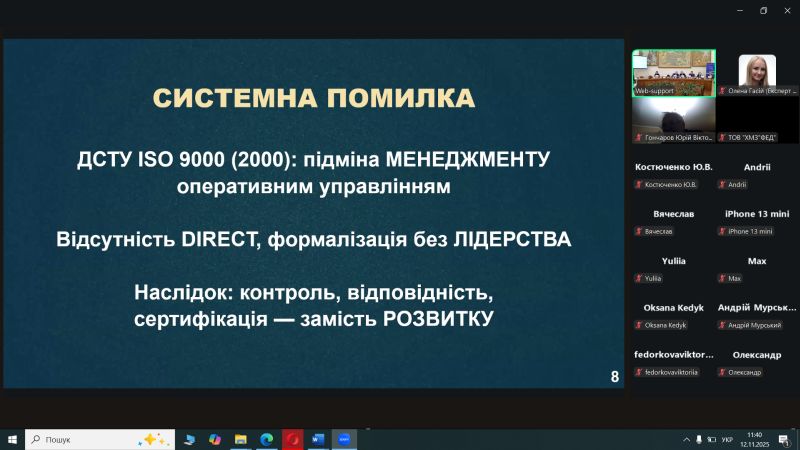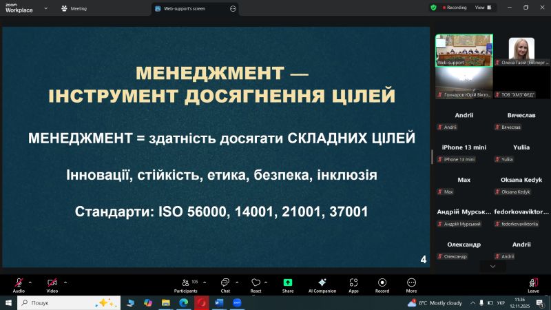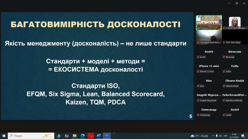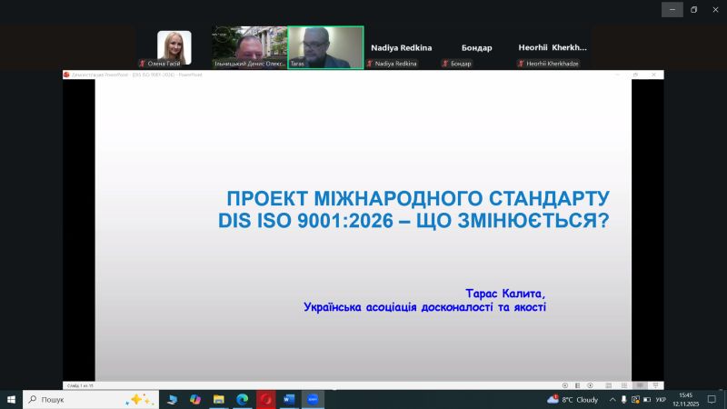 - Майстер-клас по ISO 9001:2026: Експерт Тетяна Калита ознайомила учасників із запланованими змінами у міжнародному стандарті систем менеджменту якості, що дозволить заздалегідь підготуватися до нових вимог у сфері забезпечення якості освітніх послуг.