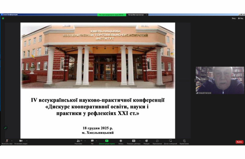 18 грудня 2025 року наукова спільнота Полтавського університету економіки і торгівлі взяла участь у спільній ІV Всеукраїнській науково-практичній конференції «Дискурс кооперативної освіти і практики у рефлексіях ХХІ ст.», яка проходила на базі Хмельницького кооперативного торговельно-економічного інституту в онлайн форматі.