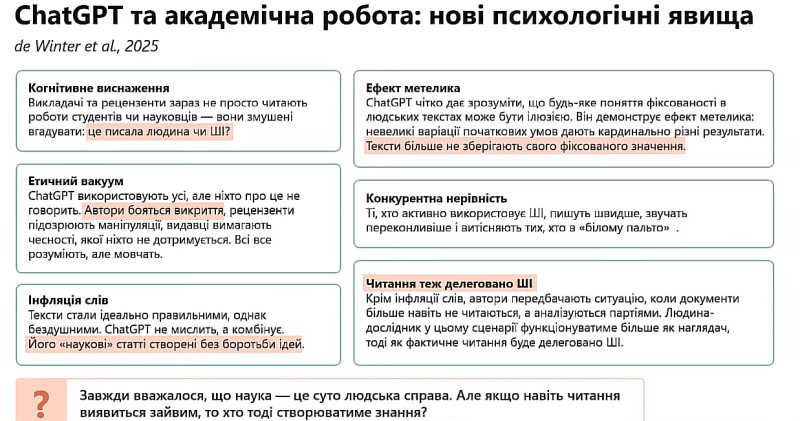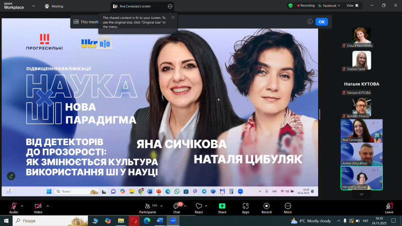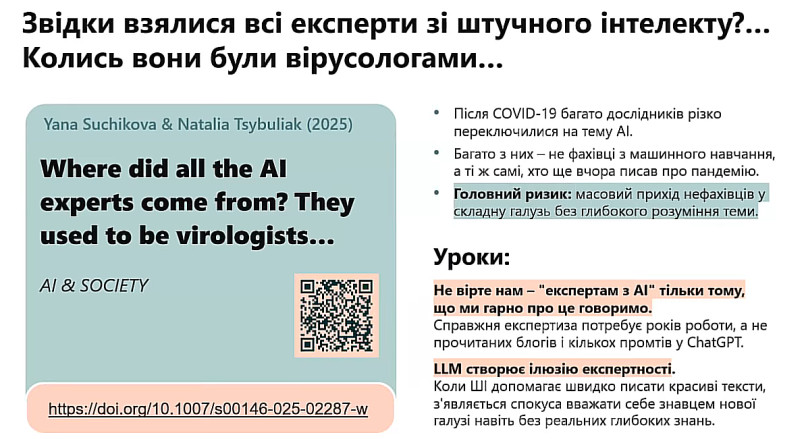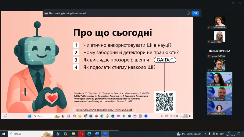 Експертки у презентованій лекції акцентували на трансформаціях наукової культури під впливом інтелектуальних технологій, необхідності переходу від заборон і перевірок до впровадження етичних принципів, відкритості та відповідального використання ШІ.