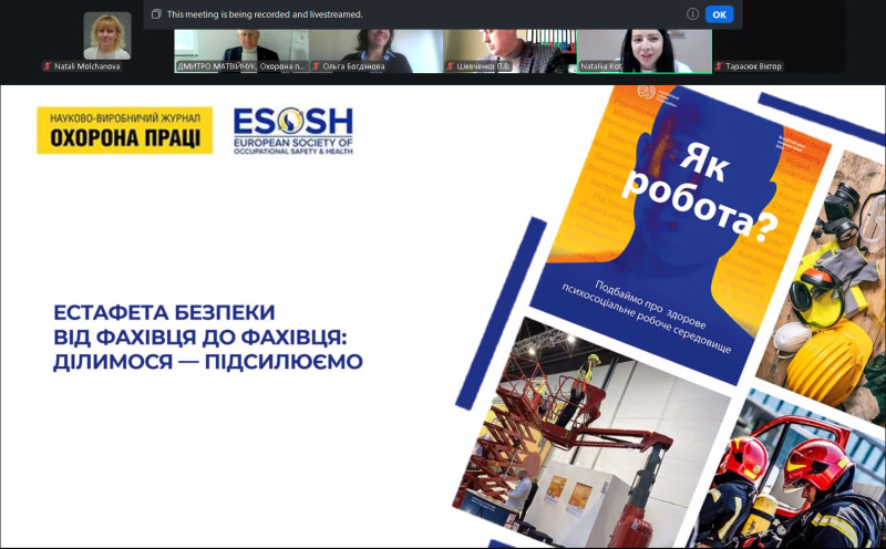 23 квітня 2026 року доцент кафедри технологій харчових виробництв і ресторанного господарства Наталія Молчанова взяла участь в онлайн-заході «Естафета безпеки від фахівця до фахівця: ділимося – підсилюємо», організованому науково-виробничим журналом «Охорона праці» спільно з Європейським співтовариством з охорони праці (ESOSH).
