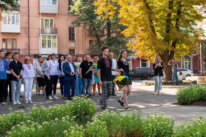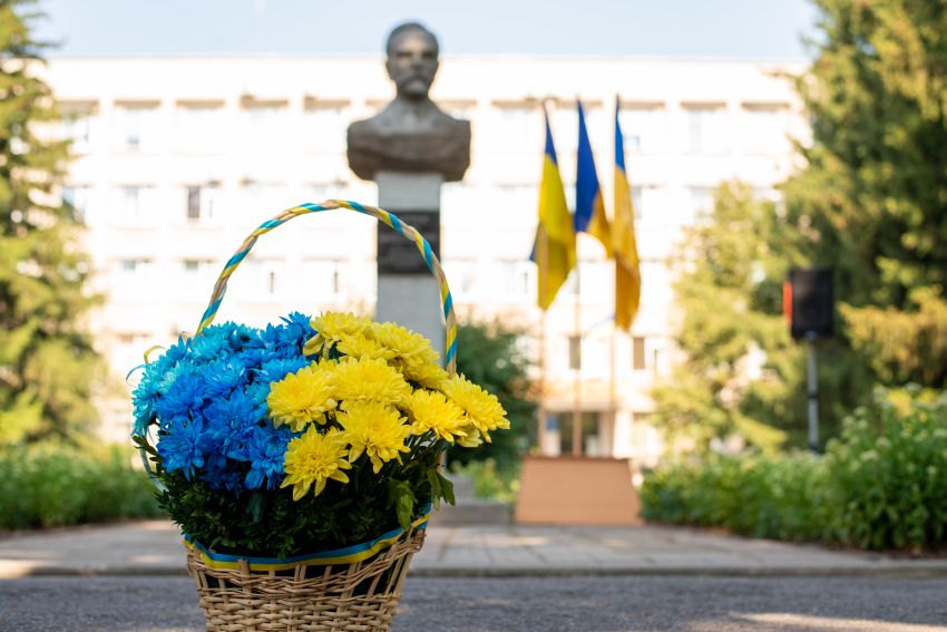 На центральній алеї, перед входом  до університету, зібралася наукова спільнота, працівники, студенти. Лунає Державний Гімн України. Потім ведучі заходу запрошують присутніх вшанувати пам’ять полеглих поборників незалежності нашої держави та загиблих під час російсько-української війни хвилиною мовчання. Завершили захід покладанням квітів до пам’ятника Борису Мартосу.