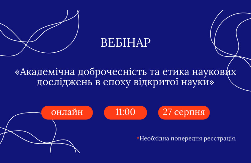 Вебінар: «Академічна доброчесність та етика науковихдосліджень в епоху відкритої науки»