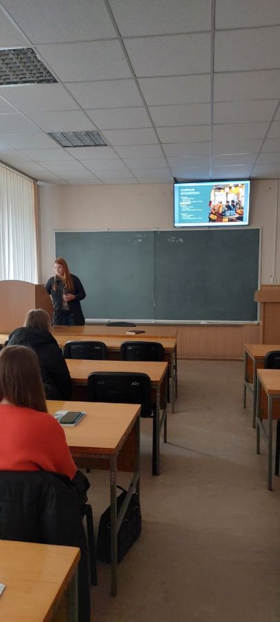 Цінність даного заняття полягала в тому, що студенти змогли поспілкуватися і отримати практичні рекомендації від  діючого представника малого бізнесу – ФОП  Супрунець О., який займається виготовленням та реалізацією арахісової пасти, а також є студентом 4 курсу спеціальності 292 Міжнародні економічні відносини. Олександр розповів про власний шлях розвитку підприємницької діяльності, про перешкоди і ризики, які доводиться долати в  сучасних умовах господарювання.