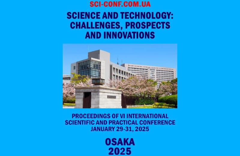 VI Міжнародна науково-практична конференція «SCIENCE AND TECHNOLOGY: CHALLENGES, PROSPECTS AND INNOVATIONS», 29-31.01.2025, Осака, Японія