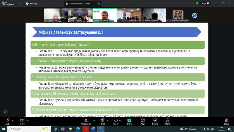 Заключна частина заходу перетворилася на жваву дискусійну панель, де науково-педагогічні працівники та здобувачі вищої освіти мали змогу поставити спікеру прямі запитання та обговорити шляхи вирішення етичних дилем, спричинених ШІ.