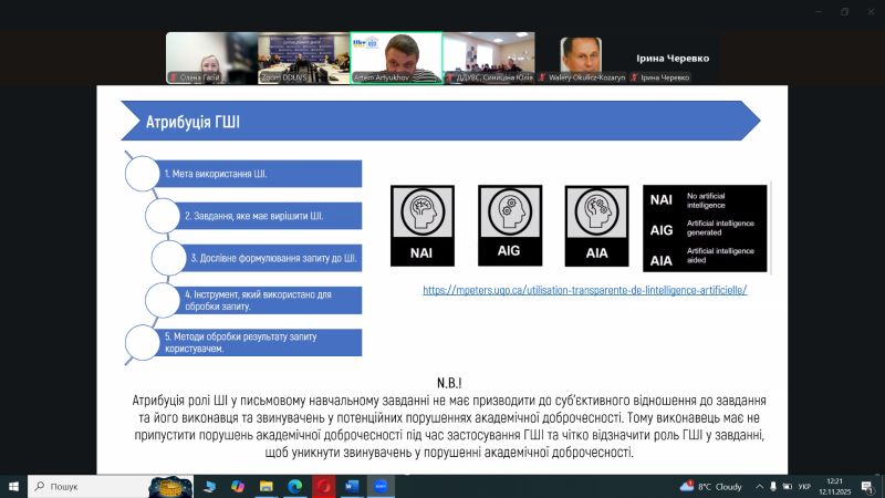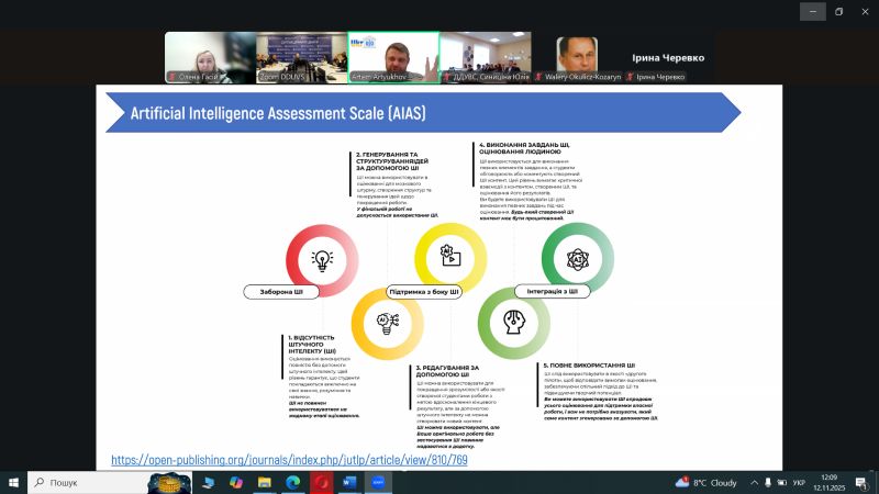 - Справедливість оцінювання: Як має бути трансформована система контролю знань, щоб відокремити власні результати здобувача від результатів, отриманих за допомогою ШІ?