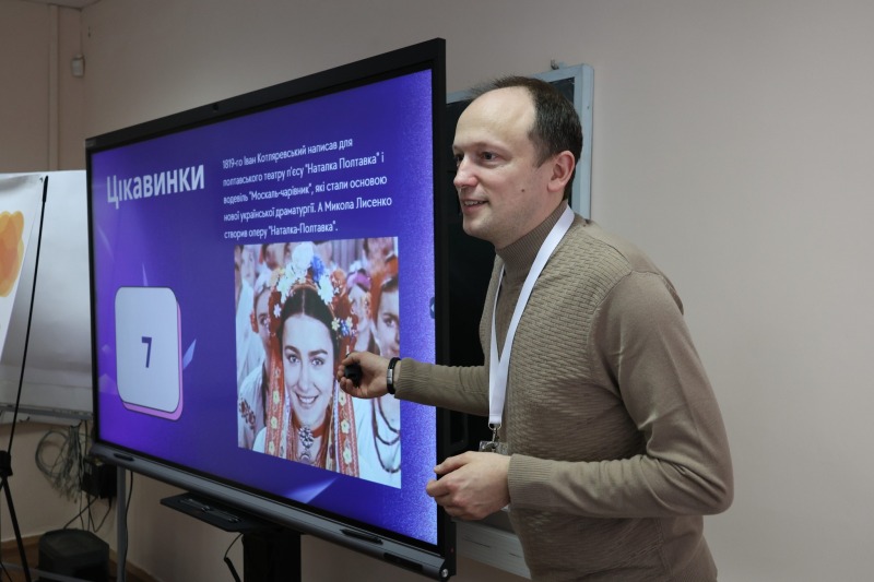Модератор заходу, проректор з науково-педагогічної роботи ПУЕТ Юрій Матвієнко, представив учасникам VR-тур музеєм-садибою Івана Петровича Котляревського. Цей програмний продукт було розроблено в лабораторії імерсивних технологій навчально-наукового центру “STEAM-ХАБ” ПУЕТ. Завдяки VR-технологіям учасники змогли перенестися у віртуальний простір та відчути атмосферу будинку класика української літератури.