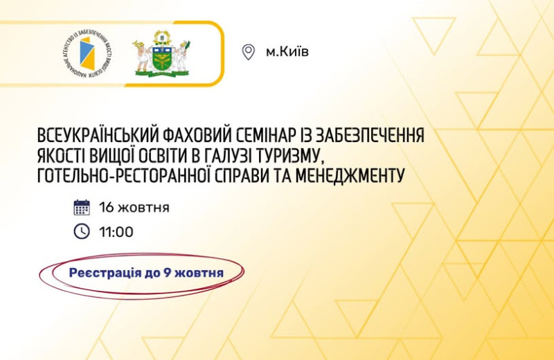 Національне агентство проводить Всеукраїнський фаховий семінар із забезпечення якості вищої освіти в галузі туризму, готельно-ресторанної справи та менеджменту у партнерстві з Державним торговельно-економічним університетом (м. Київ).