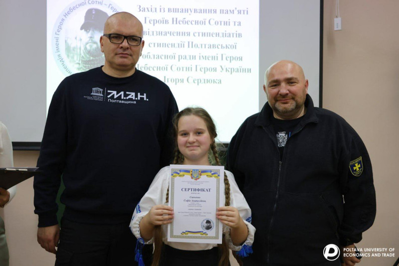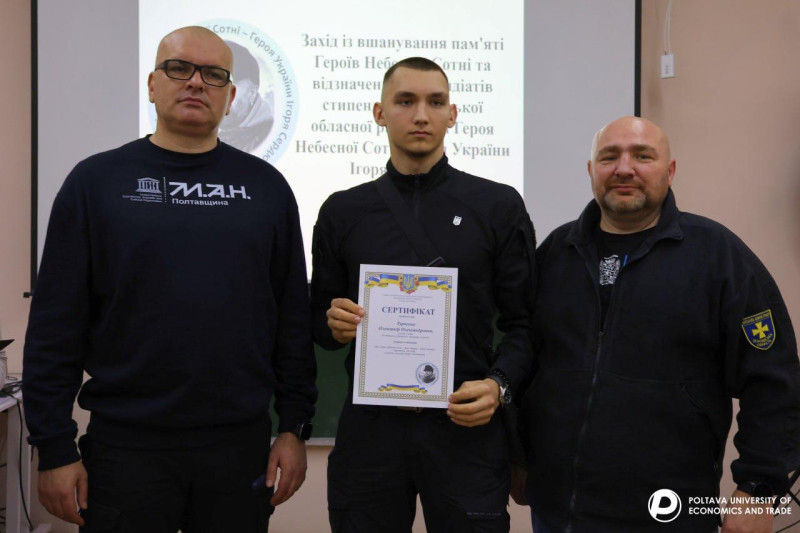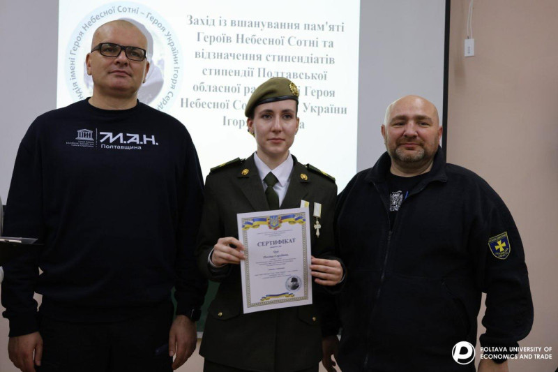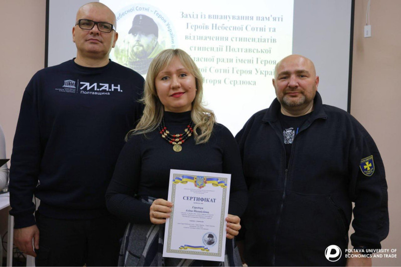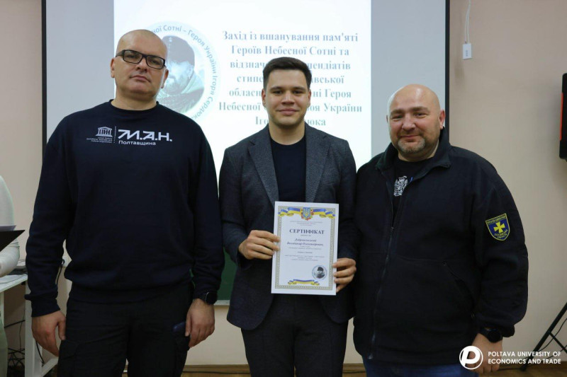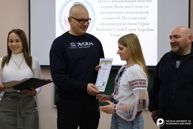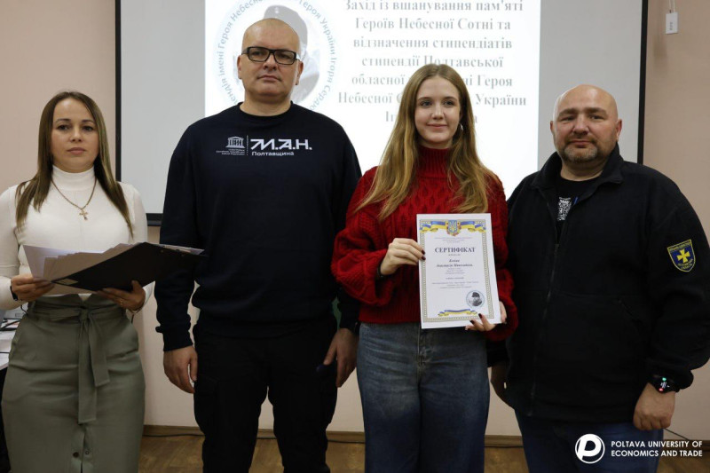 21 листопада, в День Гідності та Свободи, у Полтавському університеті економіки і торгівлівідбувся захід з вшанування пам’яті Героїв Небесної Сотні та церемонія вручення сертифікатів на отримання Стипендії імені Героя Небесної Сотні, Героя України Ігоря Сердюка.