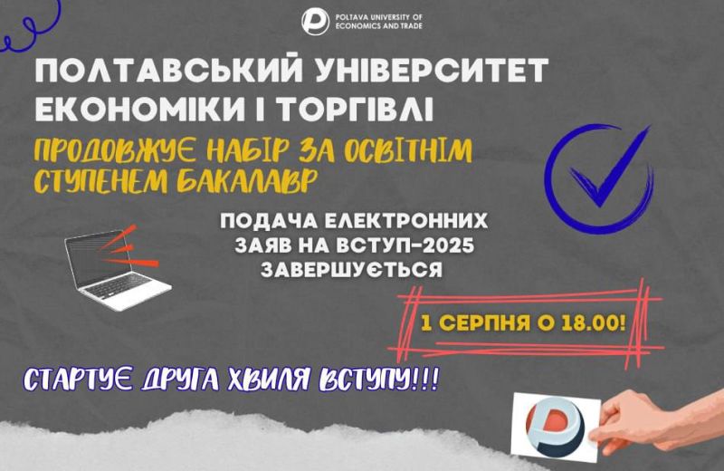 Полтавський університет економіки і торгівлі розпочинає другу хвилю вступу за освітнім ступенем бакалавр.