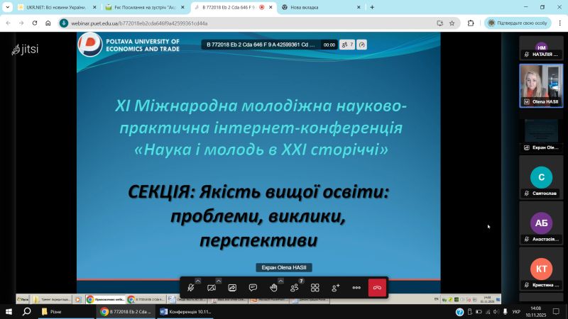 10 листопада 2025 року, з нагоди Всесвітнього дня якості, Всесвітнього дня науки в ім’я миру та розвитку і Міжнародного року кооперативів 2025, відбулася секція «Якість вищої освіти: проблеми, виклики, перспективи» у межах роботи ХІ Міжнародної молодіжної науково-практичної інтернет-конференції «Наука і молодь у ХХІ сторіччі», що проходила під керівництвом директора Навчально-наукового інституту забезпечення якості вищої освіти Полтавського університету економіки і торгівлі, к.е.н., доцента Олени Гасій.
