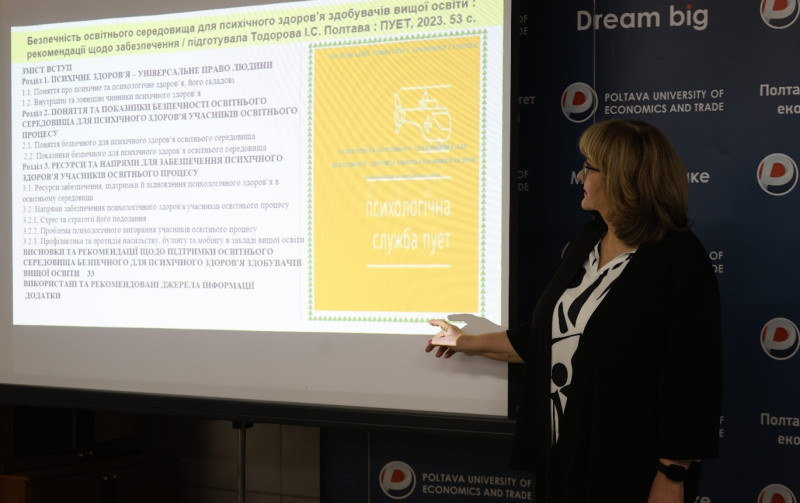 Надзвичайно корисною та зворушливою була онлайн зустріч студентів з практикантом психологічної служби, військовим психологом Станіславом Чистяковим, як відбулася 2 травня. Студенти із захопленням слухали його розповідь про «Управління стресом та емоційною стійкістю». На вебінар «Довіра, підтримка, допомога – чесноти сучасної освіти і науки», 16 травня 2025 року психолог Ірина Тодорова виступила з доповіддю «Психологічна служба як простір довіри», вона розкрила ключові функції психологічної служби ПУЕТ та наголосила, що психологічна допомога має бути доступною, не стигматизованою і спрямованою на профілактику, а не лише реагування на кризу. Серед ефективних практик служби – індивідуальне консультування, групові зустрічі, регулярні просвітницькі заходи.