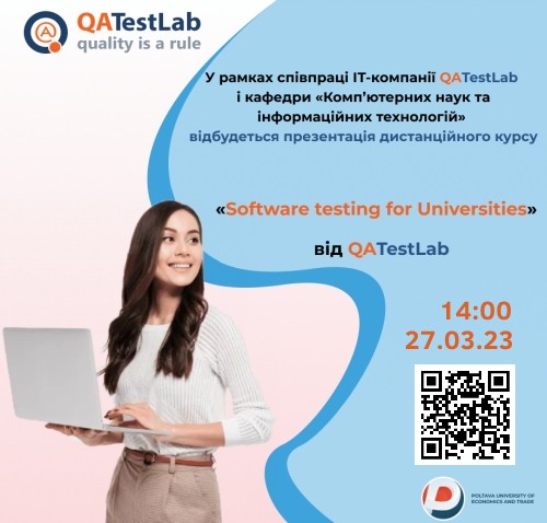 У рамках співпраці IT-компанії QATESTLAB та кафедри Комп’ютерних наук та інформаційних технологій відбудеться презентація навчального курсу «Software testing for Universities»