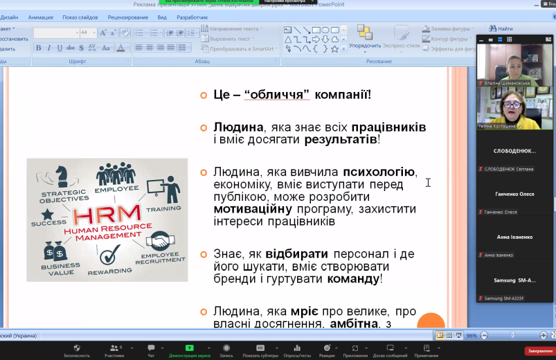 16 грудня 2024 року, під час онлайн зустрічі, завідувачка кафедри управління персоналом, економіки праці та економічної теорії професорка Тетяна Костишина презентувала ОП «Управління персоналом міжнародних корпорацій». Вона ознайомила випускників з місією HR- менеджера в сучасних умовах, яка базується на новій культурі управління персоналом. Враховуючи умови військового стану в Україні, обґрунтовані компетенції HR- менеджера як фахівця, який працює безпосередньо з персоналом, впливаючи на ефективність людських ресурсів. Особлива увага приділена сутності діяльності HR- менеджера саме міжнародних корпорацій в контексті формування їх як директорів професійного щастя та командного успіху. Для випускників коледжів суттєвою та актуальною інформацією були висвітлені перспективи працевлаштування після закінчення навчання в університеті. Зустріч закінчилась історіями успіхів випускників кафедри, посадами та місцями роботи яких є міжнародні компанії ОАЄ, адміністративні директори, спеціалісти з навчання та розвитку персоналу, проектні менеджери дирекції з персоналу, керівники підприємств та організацій України, Головний консультант з управління кадрами у Верховній Раді України.