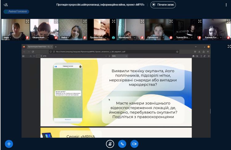 Онлайн лекція з теми «Протидія проросійській пропаганді, інформаційна війна, проект «МРІЯ»
