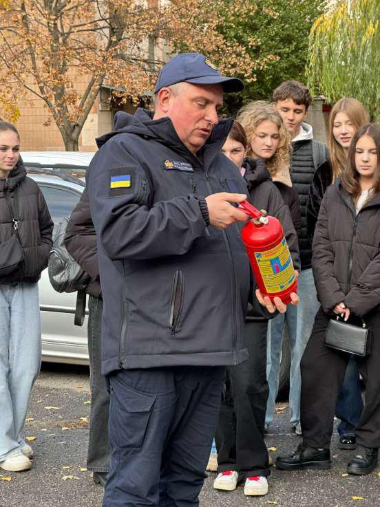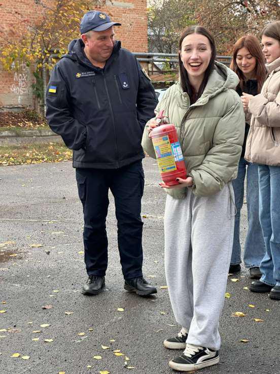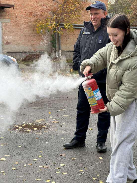 Після теоретичної частини учасники заходу мали змогу на практиці спробувати скористатися вогнегасником, відчути, як саме слід діяти у разі пожежі, та закріпити отримані знання реальними навичками.