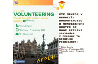 Tielen, Бельгія 19 січня – 17 листопада 2026 Дедлайн подачі — 7 вересня 2025 Що на тебе чекає? проведення майстер-класів та заходів робота на ресепшн та комунікація з гостями створення контенту для вебсайту та соціальних мереж Умови: безкоштовне проживання кишенькові + харчові кошти щомісяця медичне страхування ESC відшкодування витрат на дорогу підтримка ментора + участь […]