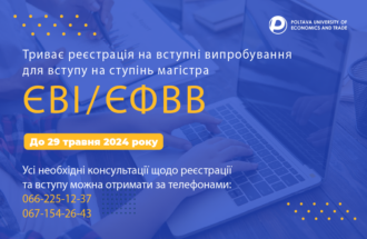 Реєстрація вступників для складання Єдиного вступного іспиту (ЄВІ) та Єдиного фахового вступного випробування (ЄФВВ) триває до 29 травня 2024 року. Реєстрацію осіб, які мають намір складати ЄВІ/ЄФВВ, здійснює приймальна комісія ПУЕТ за умови особистої присутності вступника або дистанційно. Для здійснення дистанційної реєстрації необхідно надіслати на електронну адресу: primcom.puet@gmail.com із зазначенням у темі листа «Реєстрація ЄВІ/ЄФВВ […]