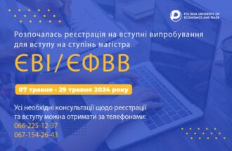 Реєстрація вступників для складання Єдиного вступного іспиту (ЄВІ) та Єдиного фахового вступного випробування (ЄФВВ) розпочинається 07 травня та закінчується 29 травня 2024 року. Реєстрацію осіб, які мають намір складати ЄВІ/ЄФВВ, здійснює приймальна комісія ПУЕТ за умови особистої присутності вступника або дистанційно. Для здійснення дистанційної реєстрації необхідно надіслати на електронну адресу: primcom.puet@gmail.com із зазначенням у темі листа « Реєстрація ЄВІ/ЄФВВ […]