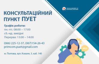 Гарячі новини для майбутніх студентів! Розпочав роботу консультаційний пункт Полтавського університету економіки і торгівлі (ПУЕТ) з питань реєстрації електронних кабінетів вступників, електронного вступу, подачі заяв та документів у вступну кампанію 2023! Місцезнаходження: Адреса: м. Полтава, вул. Коваля, 3, каб. 140 (приймальна комісія університету). Контактні телефони: (066) 225-12-37(0 (067) 154-26-43 Графік роботи: Понеділок – п’ятниця: 08:00 […]