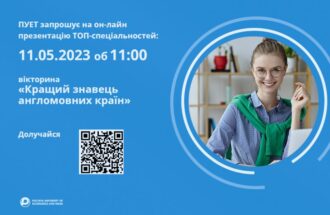 До уваги студентів закладів фахової передвищої освіти! ПУЕТ запрошує на он-лайн презентацію ТОП-спеціальностей: 11.05.2023 об 11.00 вікторина «Кращий знавець англомовних країн». Долучайся за покликанням: https://us02web.zoom.us/j/89076594370?pwd=TDVSWUJYcUFSaTUvcXVkeDA1Y0F4Zz09 і навчайся у найкращих! Ідентифікатор конференції: 890 7659 4370 Код доступу: 2023