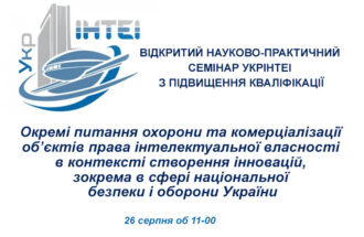Шановні колеги! 26 серпня об 11-00 відбудеться відкритий науково-практичний семінар УкрІНТЕІ з підвищення кваліфікації на тему «Окремі питання охорони та комерціалізації об’єктів права інтелектуальної власності в контексті створення інновацій, зокрема в сфері національної безпеки і оборони України». Спікери: Ольга Хмара, професіонал з інтелектуальної власності 1 категорії, УКРНОІВІ Євген Головач, провідний професіонал з інтелектуальної власності, УКРНОІВІ Тези: ключові проблеми та […]